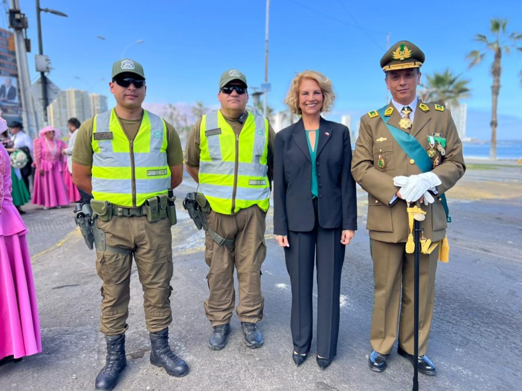 “Como delegada presidencial estoy muy complacida de haber compartido este día, y días previos también, con Carabineros de Chile; muy contenta de haber participado en esta emotiva ceremonia, con participación de Gendarmería, y no me queda más que saludar a todos los carabineros de nuestra región por la enorme labor que cumplen, por el compromiso abnegado que tienen y solamente decir, gracias Carabineros de Chile”, dijo la delegada presidencial regional de Tarapacá, Adriana Tapia Cifuentes.