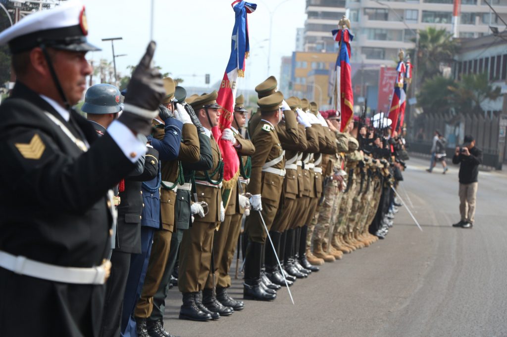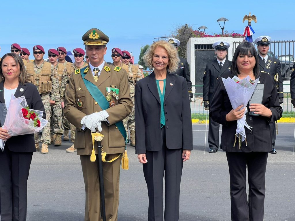 La delegada presidencial regional de Tarapacá, Adriana Tapia Cifuentes, acompañó al jefe de zona Tarapacá, general Adrián Andrades, en la ceremonia cívico militar, que se realizó en la Plaza O’Higgins, con motivo del nonagésimo noveno aniversario de Carabineros de Chile y que por primera vez contó con la activa participación de Gendarmería de Chile.
